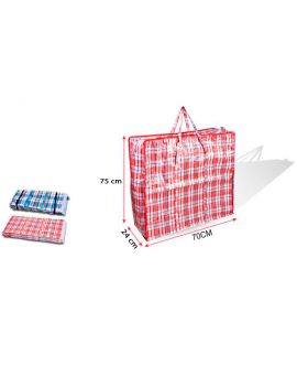 Esta bolsa plástica a cuadros de 70 x 75 x 24 cm es perfecta para guardar todo tipo de objetos como ropa, juguetes o mantas. También es ideal para mudanzas, ya que te permitirá transportar una gran cantidad de objetos gracias a su gran capacidad. Es reutilizable y cuenta con cierre de cremallera y asas grandes.