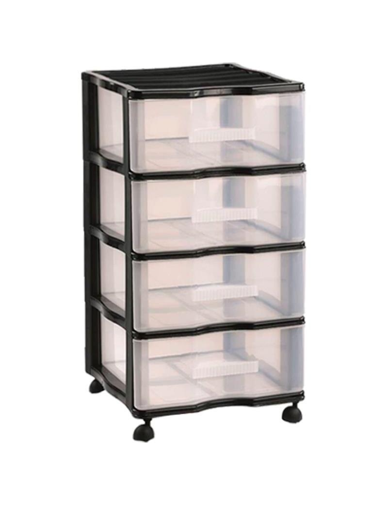 Con esta práctica cajonera de 4 cajones, podrás mantener todo en orden fácilmente. Está fabricada en plástico de gran calidad y mide con ruedas 67,5 x 37 x 39,3 cm (alto x ancho x profundo); mide sin ruedas 64 x 37 x 39,3 cm (alto x ancho x profundo).