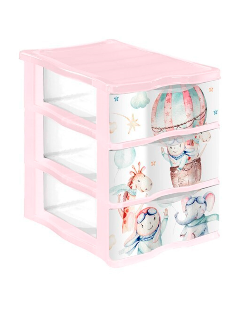 Preciosa cajonera infantil de 3 cajones modelo "Volar". Sus múltiples cajones permiten guardar varias cosas por separado y clasificarlas por tipo; y al ser transparentes también facilitan encontrar las cosas. No solo sirve para almacenar artículos de papelería, sino también para guardar juguetes, ropa, etc. Ideal para colocar en la sala de estar, dormitorio o estudio.