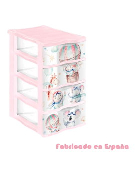 Preciosa cajonera infantil de 4 cajones modelo "Volar". Sus múltiples cajones permiten guardar varias cosas por separado y clasificarlas por tipo; y al ser transparentes también facilitan encontrar las cosas. No solo sirve para almacenar artículos de papelería, sino también para guardar juguetes, ropa, etc. Ideal para colocar en la sala de estar, dormitorio o estudio.