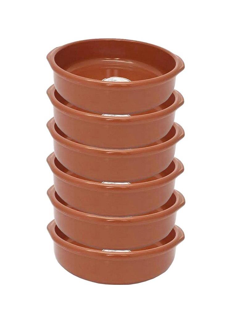 Cocina en estas estupendas cazuelas redondas fabricadas en barro refractario de 25,8 x 24,2 x 5,7 cm (largo x ancho x alto) y 22 cm de diámetro interior. Su altura por dentro es de 4,7 cm y la base tiene un diámetro de 21 cm.