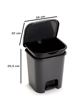 Este cubo de basura con pedal, fabricado en resistente plástico, es una solución práctica y funcional para el manejo de residuos en cualquier hogar u oficina. Con una capacidad de 8 litros, ofrece suficiente espacio para el desecho diario, permitiendo mantener los espacios limpios y organizados sin necesidad de vaciarlo constantemente. Su diseño compacto, con dimensiones aproximadas de 30 cm de alto, 25 cm de ancho y 21 cm de profundidad, permite colocarlo en espacios reducidos sin que ocupe demasiado lugar, facilitando su integración en cualquier ambiente.