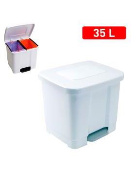 Este cubo para la basura ecológico de 35 litros te será muy útil ya que cuenta con un separador en la parte superior que te permitirá colocar dos bolsas de basura y así poder reciclar. Está fabricado en plástico polipropileno de gran resistencia y calidad en color blanco.