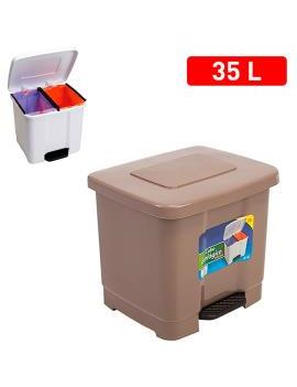 Este cubo para la basura ecológico de 35 litros te será muy útil ya que cuenta con un separador en la parte superior que te permitirá colocar dos bolsas de basura y así poder reciclar. Está fabricado en plástico polipropileno de gran resistencia y calidad en color marrón topo.