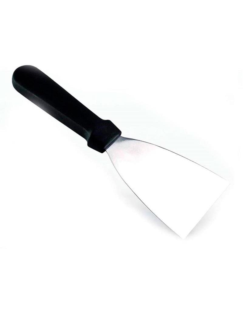 Espátula de acero inoxidable de 11 CM y 24 en su totalidad con mango de plástico para un agarre mas cómodo.