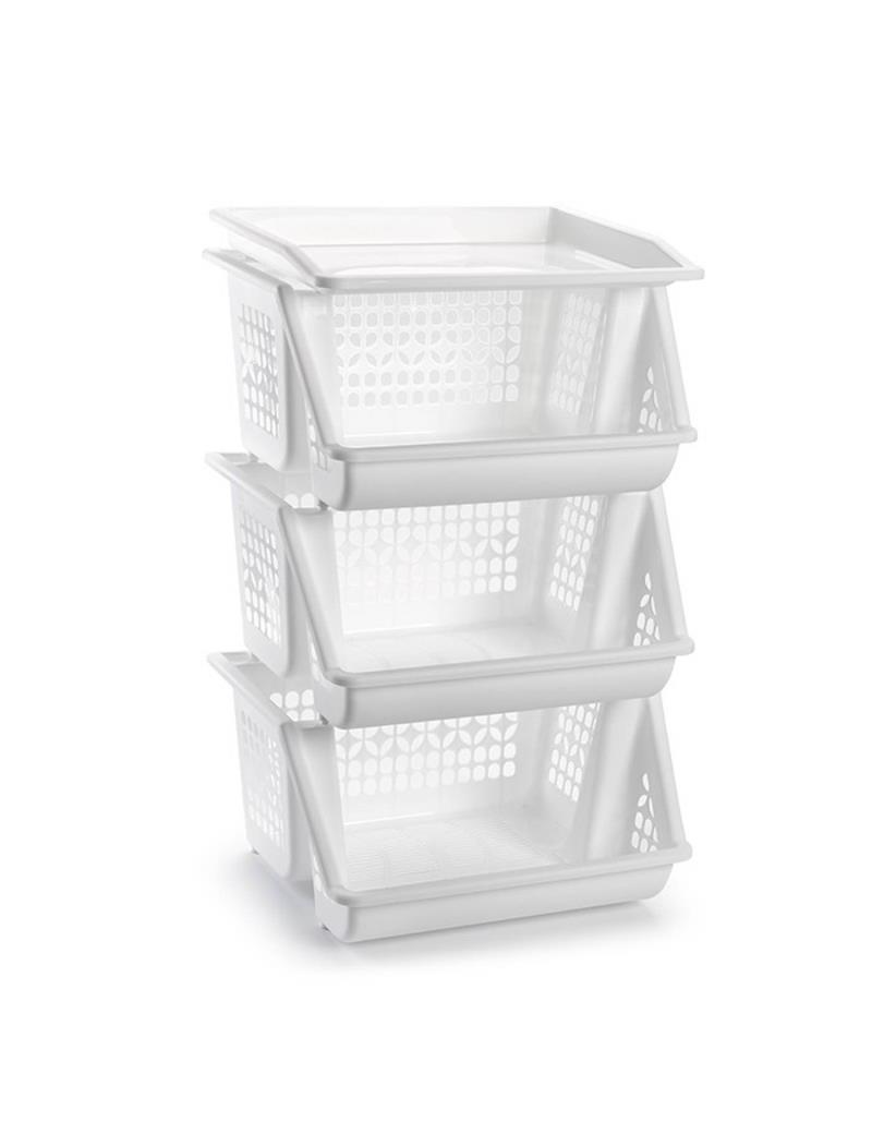 Pack de 3 Cestas de apilables multiusos, modelo verdulero. Un producto fabricado en plástico de gran calidad. Como su nombre indica, se pueden apilar unos encima de otros. Compra los que necesites y mantén ordenada tu tienda, hogar y cocina a si bien organizar todos sus necesarios y ocupa poco sitios.
