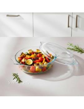 Si te gusta cocinar, esta cacerola de vidrio redonda con tapa es perfecta para tí. Es ideal para preparar deliciosas recetas al horno. Es válida para usar en horno, microondas, frigorífico y congelador. Apta para temperaturas de entre +300 ºC y -40 ºC. Fácil limpieza en lavavajillas. 100% higiénico.