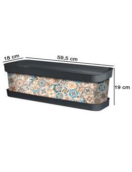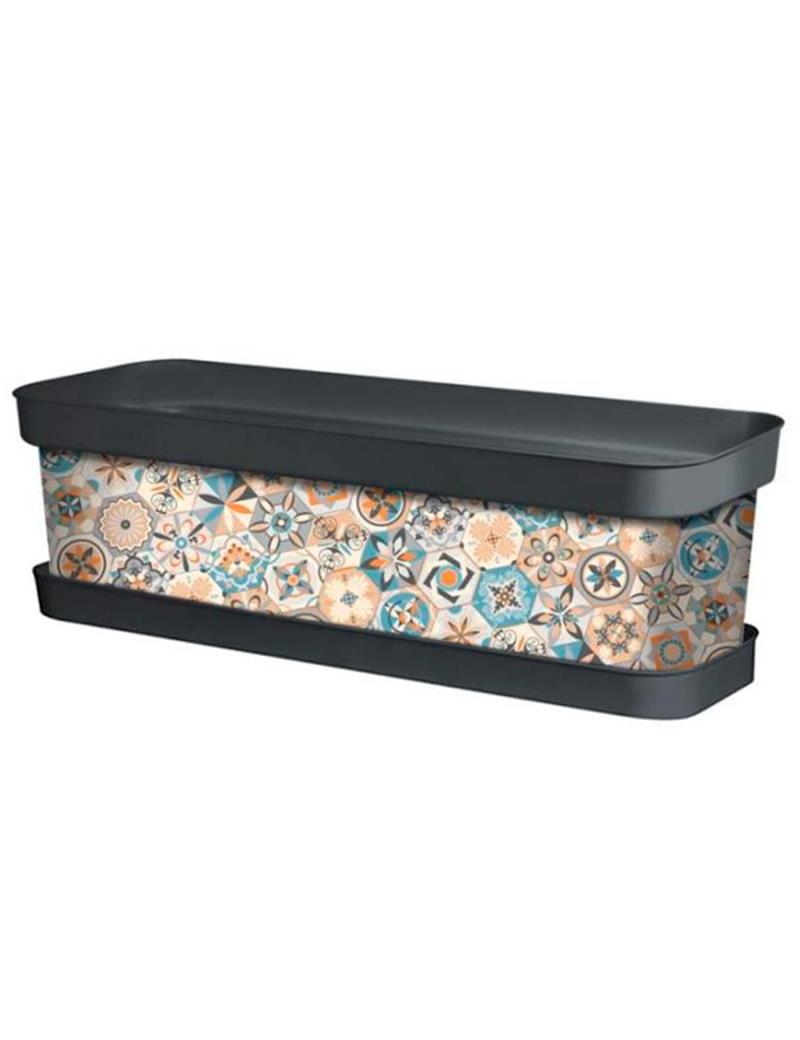 Esta preciosa jardinera rectangular de plástico de 60 cm y color gris antracita modelo Hydraulic es ideal para colocar en ella todo tipo de plantas y flores y así decorar tanto el interior como el exterior de tu hogar o negocio. Está decorada con una preciosa y colorida ilustración por lo que quedará muy bien en balcones, terrazas, porches, jardines, etc.