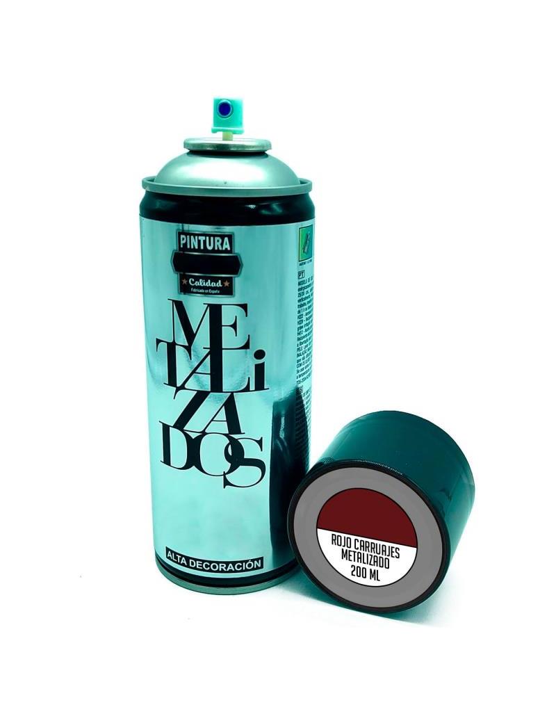 Bote de Pintura en Spray - Fabricado en España - Ideal para cualquier superficie, Madera, Metal, Cartón, Piedra o Cerámica - Capacidad de 200 ML - Rojo Carruajes Metalizado