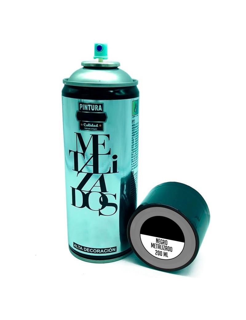 Bote de Pintura en Spray - Fabricado en España - Ideal para cualquier superficie, Madera, Metal, Cartón, Piedra o Cerámica - Capacidad de 200 ML - Negro Metalizado