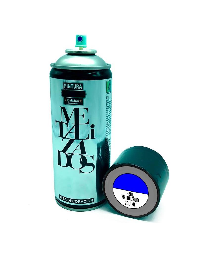Bote de Pintura en Spray - Fabricado en España - Ideal para cualquier superficie, Madera, Metal, Cartón, Piedra o Cerámica - Capacidad de 200 ML - Azul Metalizado