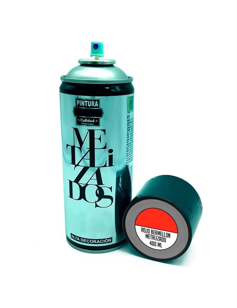 Bote de Pintura en Spray - Fabricado en España - Ideal para cualquier superficie, Madera, Metal, Cartón, Piedra o Cerámica - Capacidad de 400 ML - Rojo Bermellón Metalizado