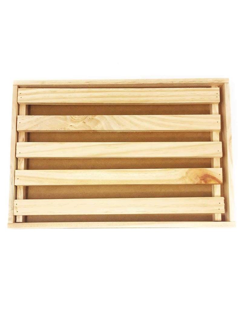 Está fabricada en madera natural resistente y de gran calidad y está compuesta de dos piezas: rejilla y recipiente para recoger las migas.