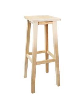 Este taburete clásico de 80 cm cuenta con un diseño sencillo que encajará a la perfección en cualquier hogar o negocio. Está fabricado en madera de gran calidad sin tratar, así que si quieres, podrás pintarlo o barnizarlo a tu gusto. La parte superior del asiento es cuadrada, con una superficie aproximada de 29 x 29 cm. Su estructura es estable, robusta y muy resistente.