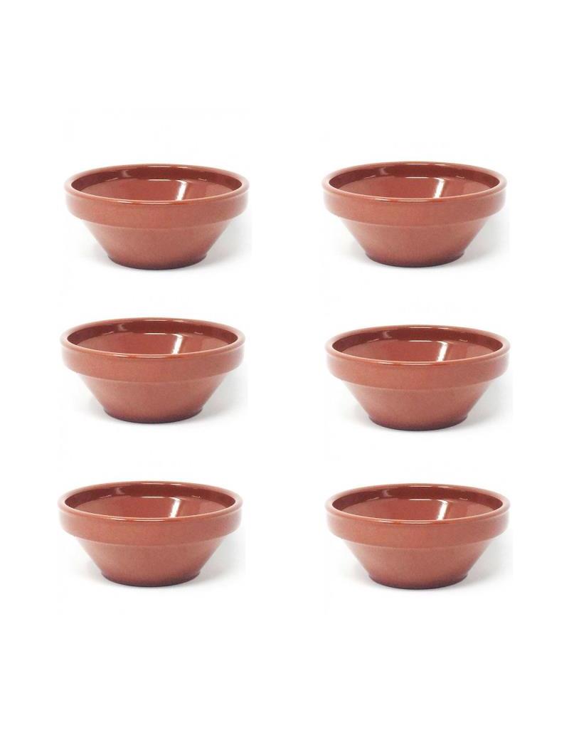 Pack de 6 cuencos de barro cocido típico, de 16 cm. de diámetro, para tomar gazpachos o caldos. Por su forma y tamaño también sirven para cualquier caldo, sopa o incluso para colocar nuestros aperitivos salados o snacks.